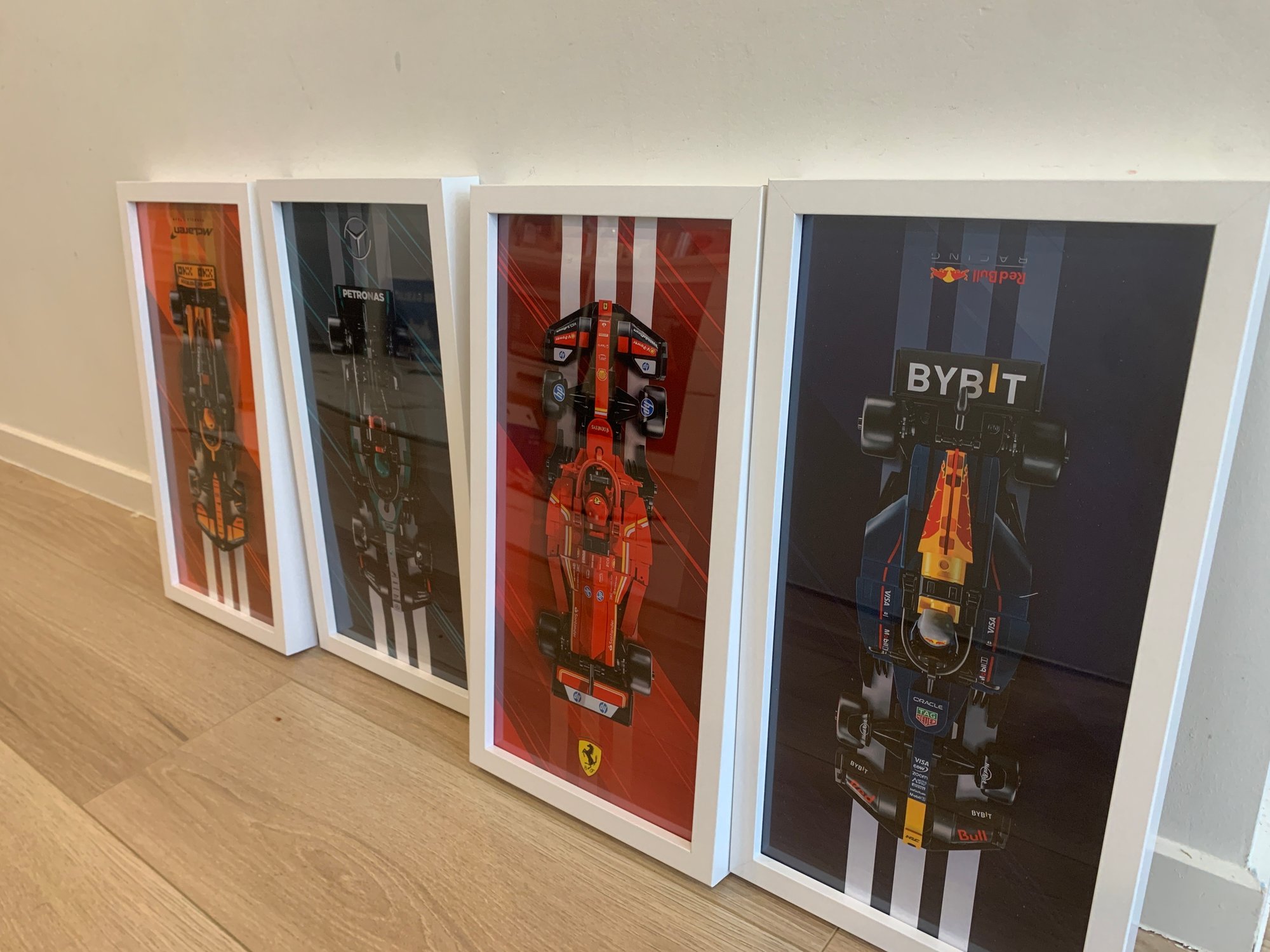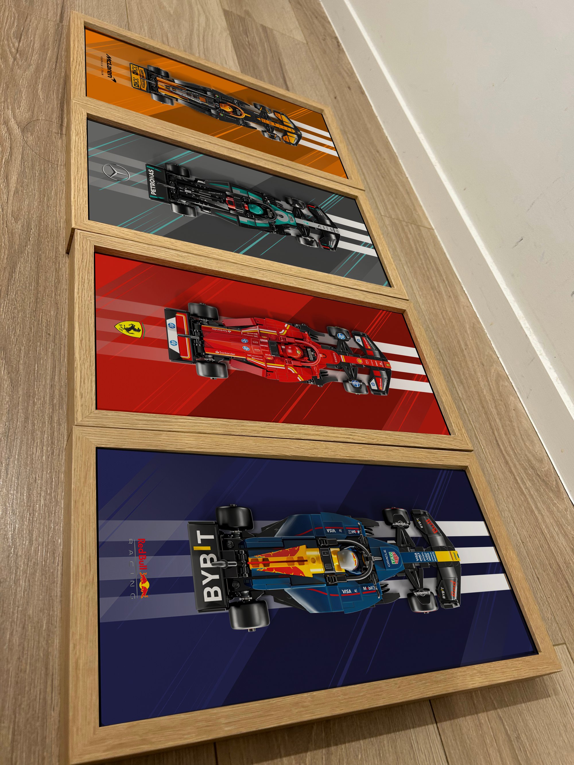 $180 β Full Set of 10 Framed F1 Car Posters (2025 Teams β 20x40cm)
